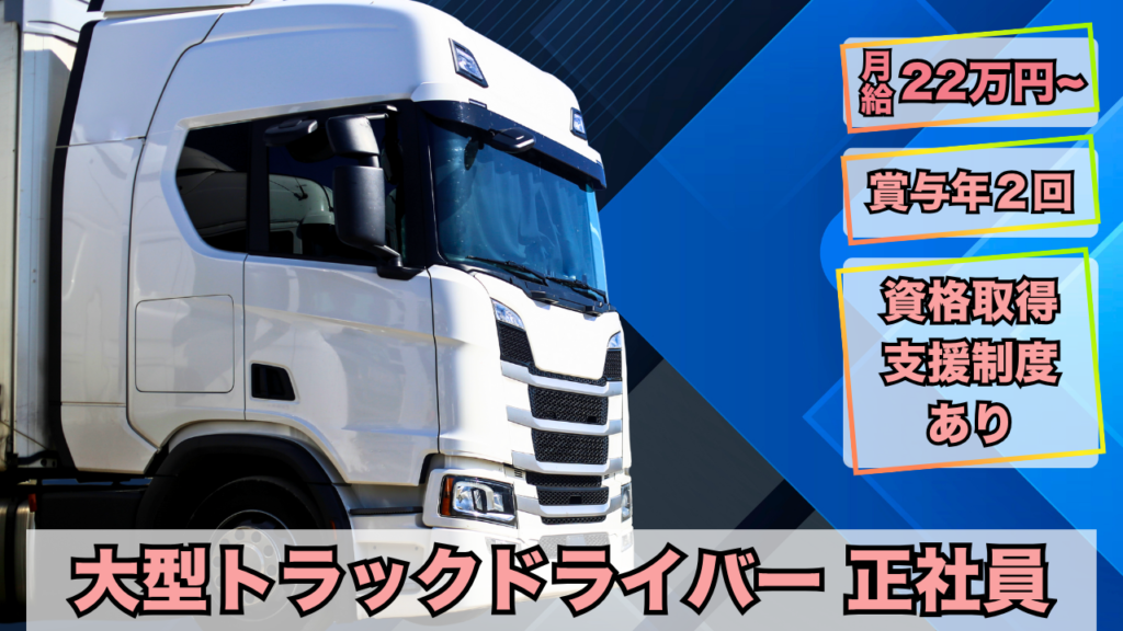 【正社員】大型トラックドライバー 正社員 昇給あり 賞与あり 学歴不問 働きやすさ重視