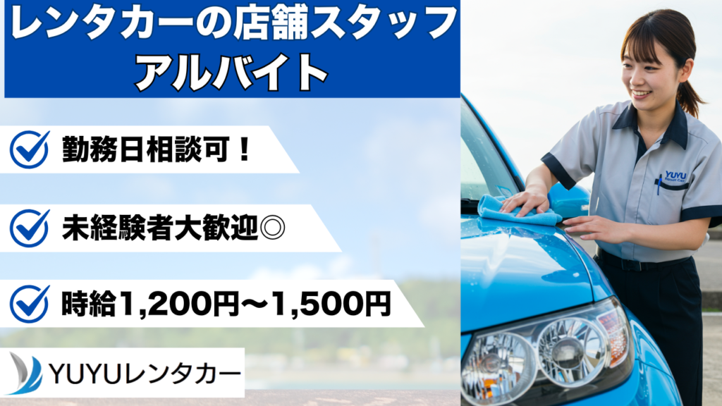 | 求める人材 | 【必須】 ・普通自動車運転免許(AT限定可)※10人乗り車両を運転できる方は尚可! ・PC基本操作(入力・コピー出力など) ・土日祝勤務可能な方 ・GW・夏季・年末年始などの休暇勤務可能な方 【歓迎】 ・レンタカー屋さんでの業務経験ある方 ・未経験でも車好きな方、明るく元気な方 \こんな方にピッタリ!/ ・明るく元気な方 ・チームワークを大切にできる方 ・長く働きたい方 電話での応募の際は下記番号まで♪ 電話応募:098-851-7434 |