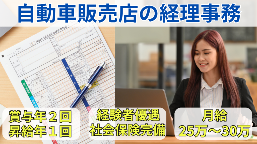 | 仕事内容 | イチオシ!好条件! 南風原町での自動車販売店の経理事務のお仕事をご紹介します! ※好条件のお仕事なので、お早めのご検討がおすすめです! 【仕事内容】 自動車販売店の経理事務として、店舗の売上や仕入れ、入出金管理など、会社のお金の流れを支える事務全般をお任せします。 営業スタッフやサービス部門と連携しながら、正確でスピーディーな事務処理を行い、店舗運営をバックオフィスから支えるポジションです。 【主な業務内容】 ●売上・入金管理 ・新車・中古車販売、整備・車検などの売上データ入力 ・入金確認、売掛金管理(未入金のチェック など) ●仕入・支払管理 ・仕入伝票の入力、買掛金の管理 ・取引先(オークション会場、部品商など)への支払業務 ●現金・預金の管理 ・日々の入出金管理、小口現金の管理 ・銀行への入金・振込手続き など ●請求書・伝票処理 ・請求書の発行・発送 ・各種伝票のチェック、ファイリング・整理 ●経理データの集計・報告 ・月次資料の作成補助(売上集計、経費集計 など) ・会計ソフトへの入力、税理士事務所とのやり取りのサポート ●総務・一般事務のサポート業務 ・来客・電話対応(取次ぎ程度) ・書類作成、ファイリング、備品管理 など <ポジションのポイント> ☆会社のお金の流れを支える“縁の下の力持ち”ポジション ☆車の販売や整備の動きが、そのまま数字として反映されるので、「この1台が今日の売上だ」と実感しながら働けます。 ☆経理だけでなく、請求書発行や書類作成、電話・来客対応など、総務・一般事務もサポート。事務職としての幅が広がります。 変更範囲:変更なし 【職業紹介事業者名:株式会社ホカマ】 |