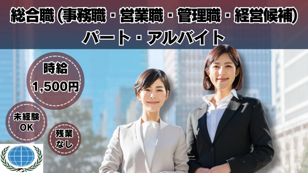 【パート】総合職 主婦(主夫)歓迎 フルタイム 残業なし 社会保険完備 ブランクOK