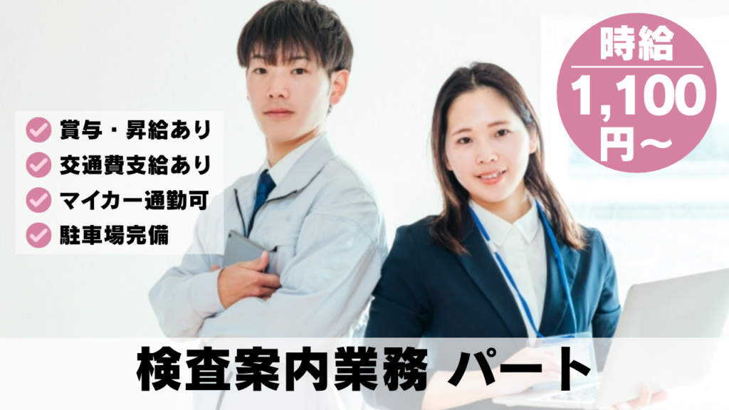 【パート】検査案内業務/サポート体制あり/マイカー通勤OK/無料駐車場あり/ブランクOK