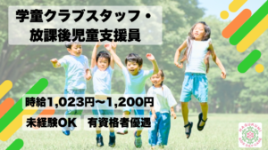 【パート】学童クラブスタッフ・放課後児童支援員 子どもが好きな方歓迎 未経験から始められる 扶養内勤務OK シフト制医療・福祉・介護系保育・教育・塾・スクール系パート・アルバイト沖縄中部宜野湾市時給1,023円 ~ 1,200円 -
